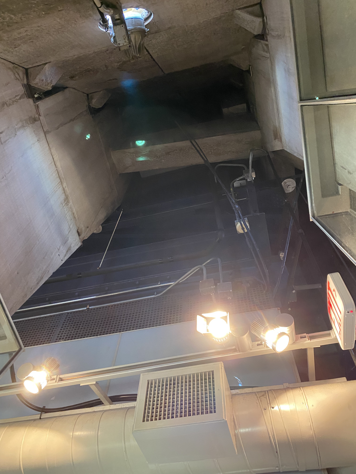 A nub in the wall on the way down one flight of stairs to get back on the elevator.