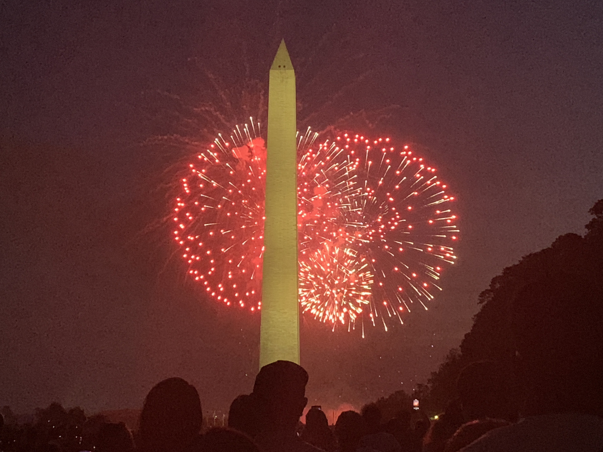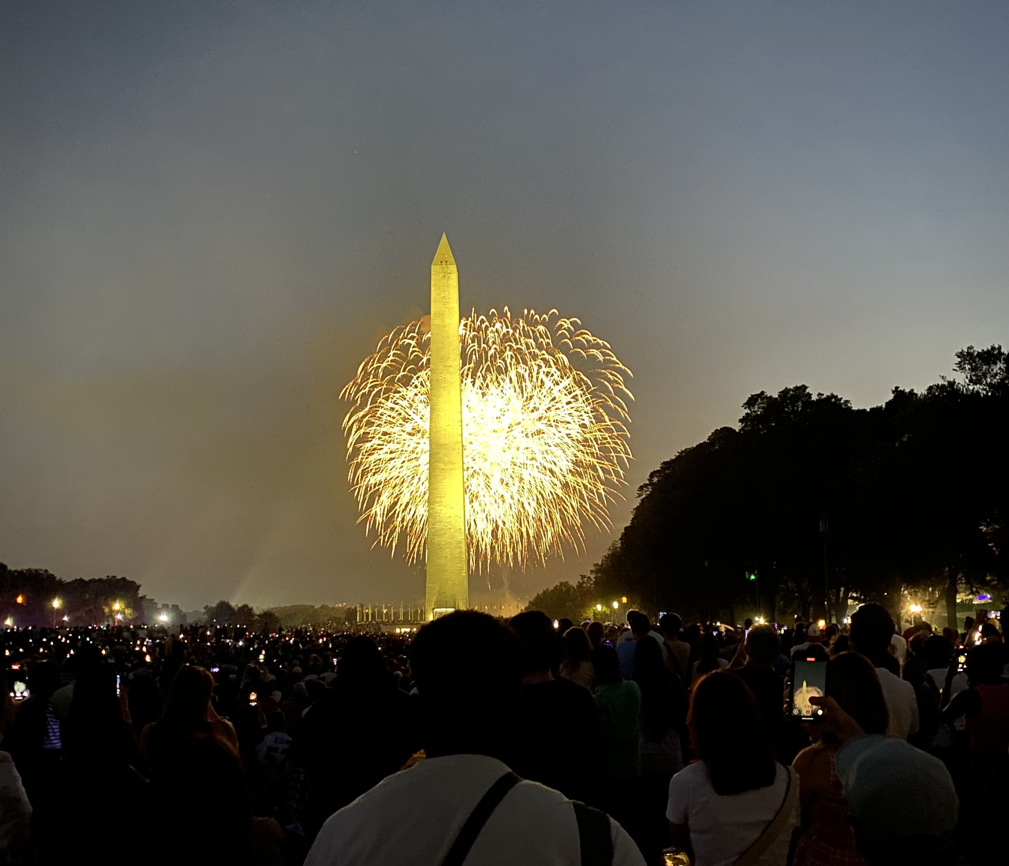 Capital in the haze. A section of new grass was blocked off for regrowth.