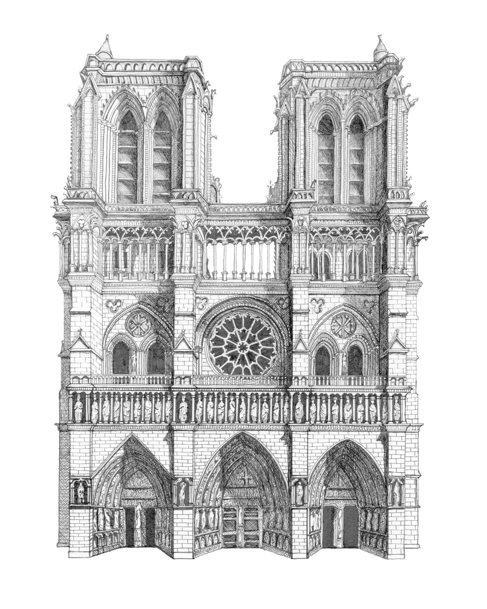 The front was inspired by Notre Dame because of its boxy shape. The side is a portion of the Cathedrale de Chartres because Wikipedia had a great illustration I could use. I printed everything on legal paper like I did for the Barbie house.
