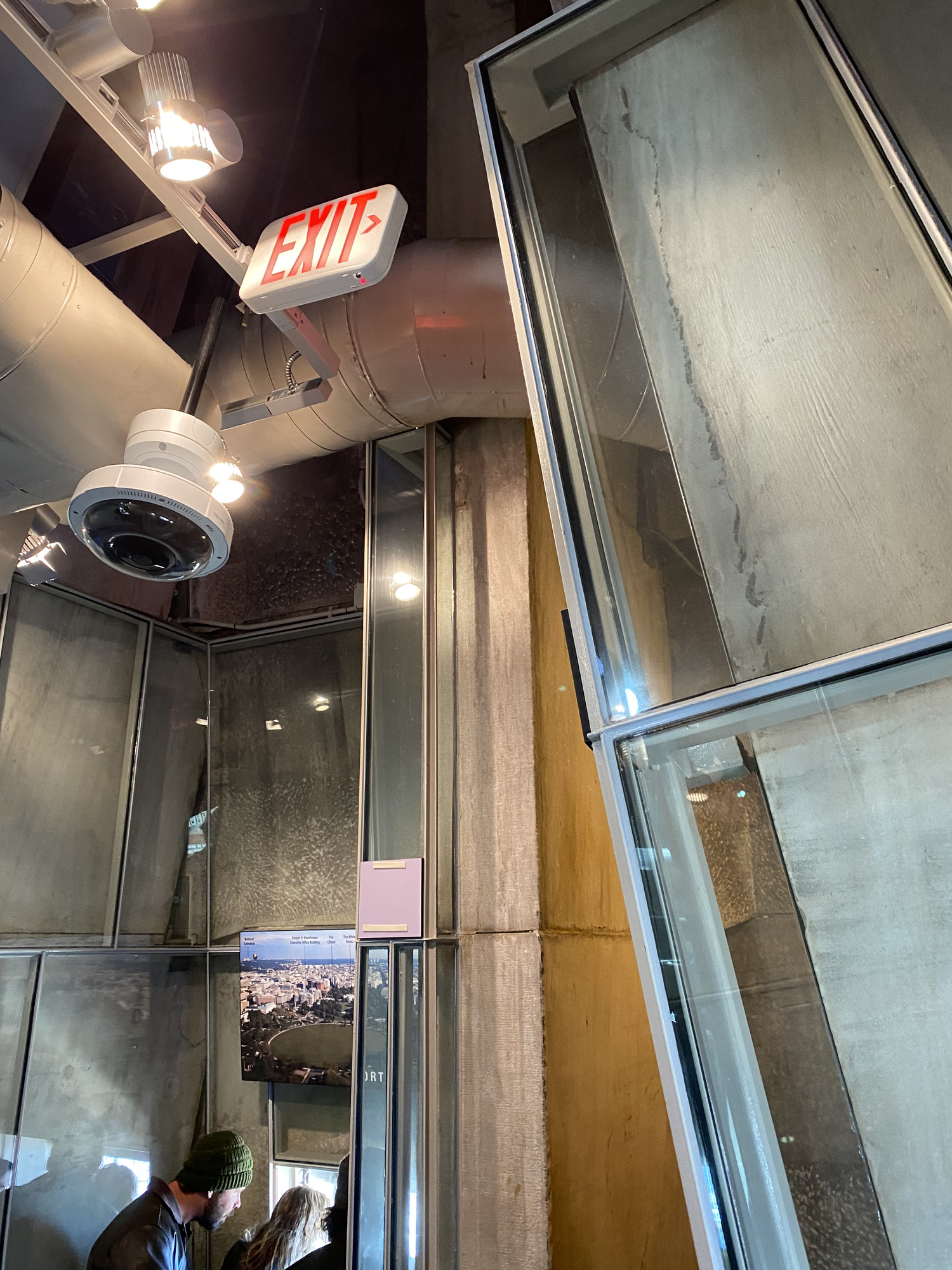 On the way down, the elevator slows and some panels become clear so you can see some of the commemorative blocks from cities, states and countries.